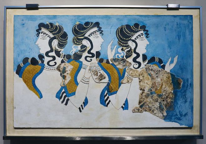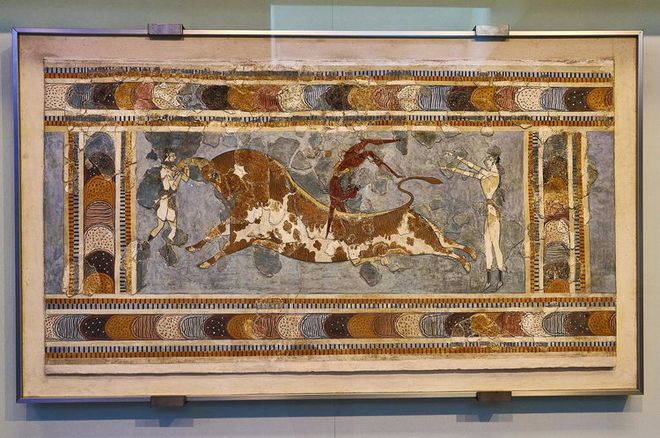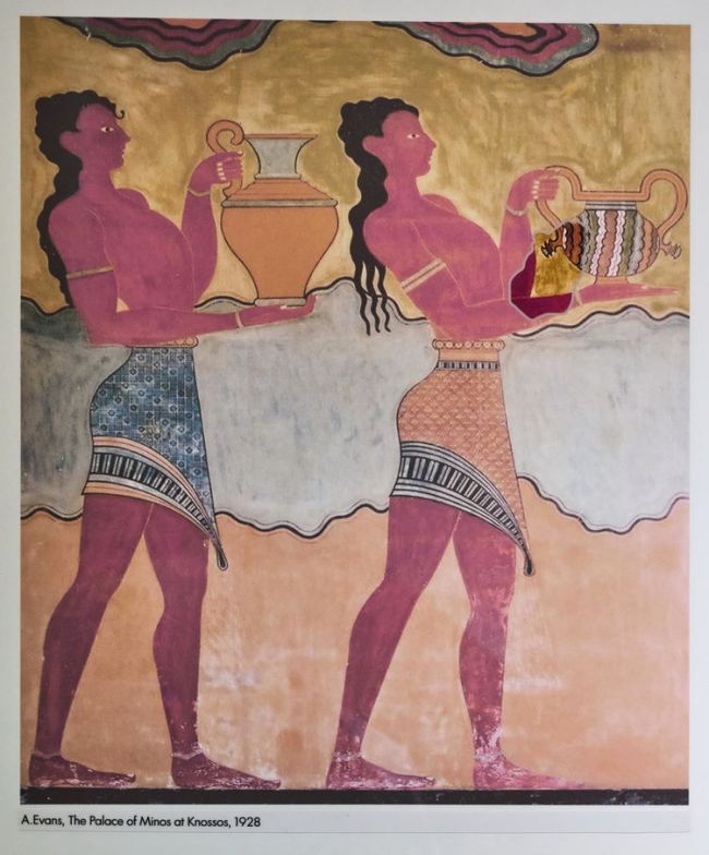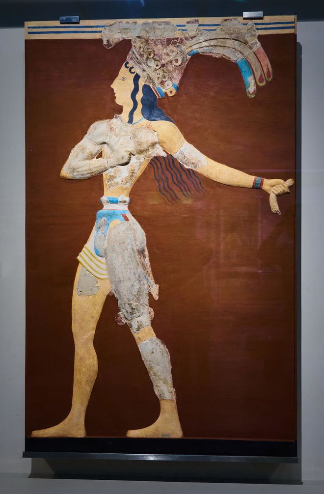 许多民族记载最早历史的是诗歌,米诺斯人则是壁画。这些壁画色彩鲜艳,人物生动,服饰华丽,是宫廷生活与社会分化的写照。